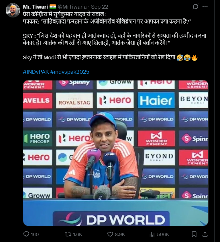 फैक्ट-चेक: क्या सूर्यकुमार यादव ने पाक खिलाड़ी फरहान को ‘आतंकी’ कहा?