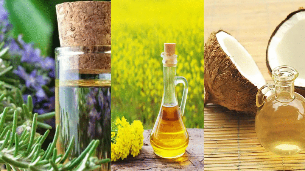 आइए, हम तीन सबसे कॉमन तेलों – नारियल तेल, रोजमेरी ऑयल और सरसों का तेल – का विस्तार से विश्लेषण करते हैं और समझते हैं कि इनमें से कौन सा तेल आपके बालों के लिए सही है।