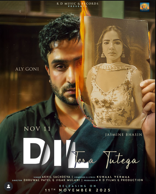 हाल ही में (recently), सोशल मीडिया पर एक ऐसा पोस्टर वायरल हुआ जिसने फैंस के बीच हलचल मचा दी। पोस्टर में अली गोनी गुस्से (anger) में नजर आ रहे हैं और उनके हाथ में जैस्मिन की फोटो (photo) है, जिसे वे जला रहे हैं। यह देखकर फैन्स को लगा कि कहीं इन दोनों का रिश्ता टूट (breakup) तो नहीं गया! लेकिन (but) सच्चाई कुछ और ही है — असल में यह अली और जैस्मिन के आने वाले गाने “दिल तेरा भी टूटेगा” का पोस्टर है।