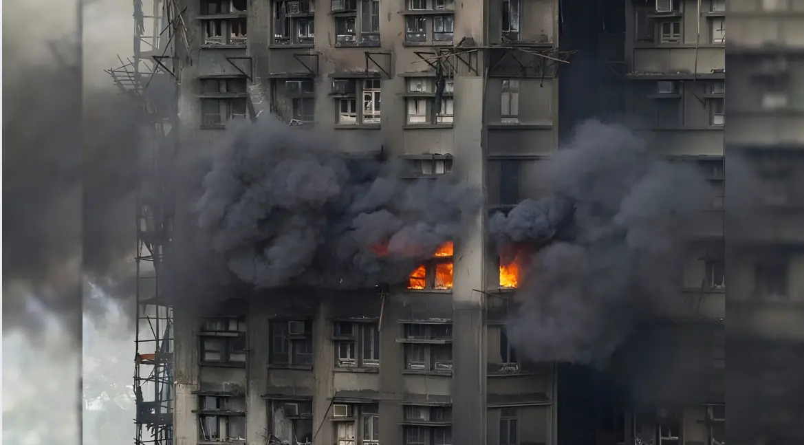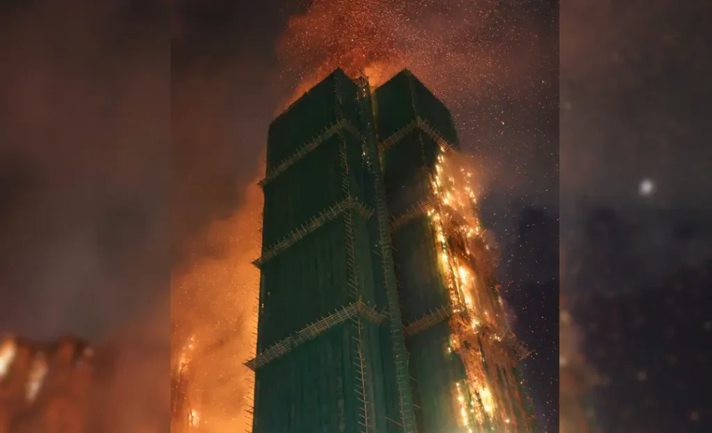 According to witnesses, the massive flames spread with alarming speed—from a single apartment block to multiple towers—fueled by strong winds and burning bamboo scaffolding. Moreover, thick black smoke engulfed the skyline, turning the bustling city into a scene of panic.