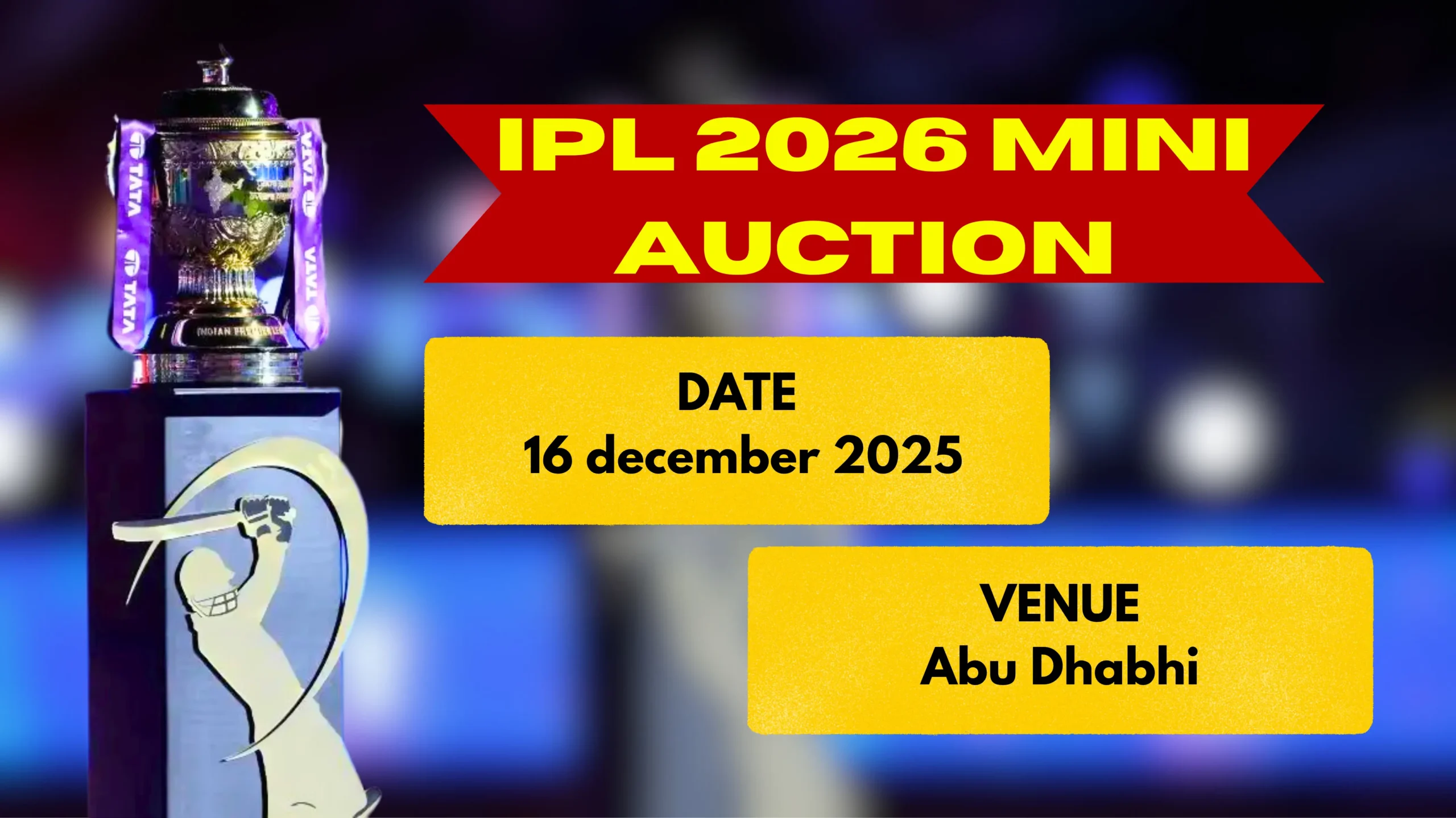 रिपोर्ट्स के अनुसार (According to reports), IPL 2026 Mini Auction 16 दिसंबर को अबू धाबी में आयोजित किया जाएगा।