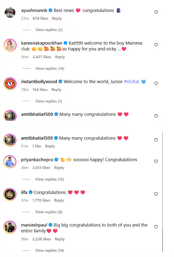 वहीं आयुष्मान खुराना (Ayushmann Khurrana) ने लिखा — “बेस्ट न्यूज! मुबारक हो।”