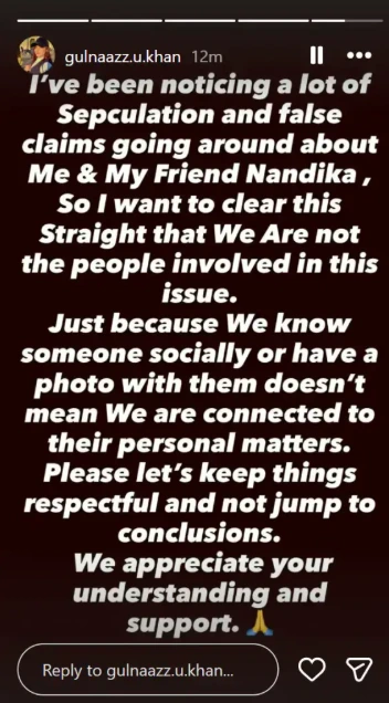 अफवाहें बढ़ती ही जा रही थीं, तभी (Then) कोरियोग्राफर टीम की ओर से सफाई आई। नंदिका की करीबी दोस्त और जानी-मानी कोरियोग्राफर गुलनाज खान (Gulnaaz Khan)ने कहा—